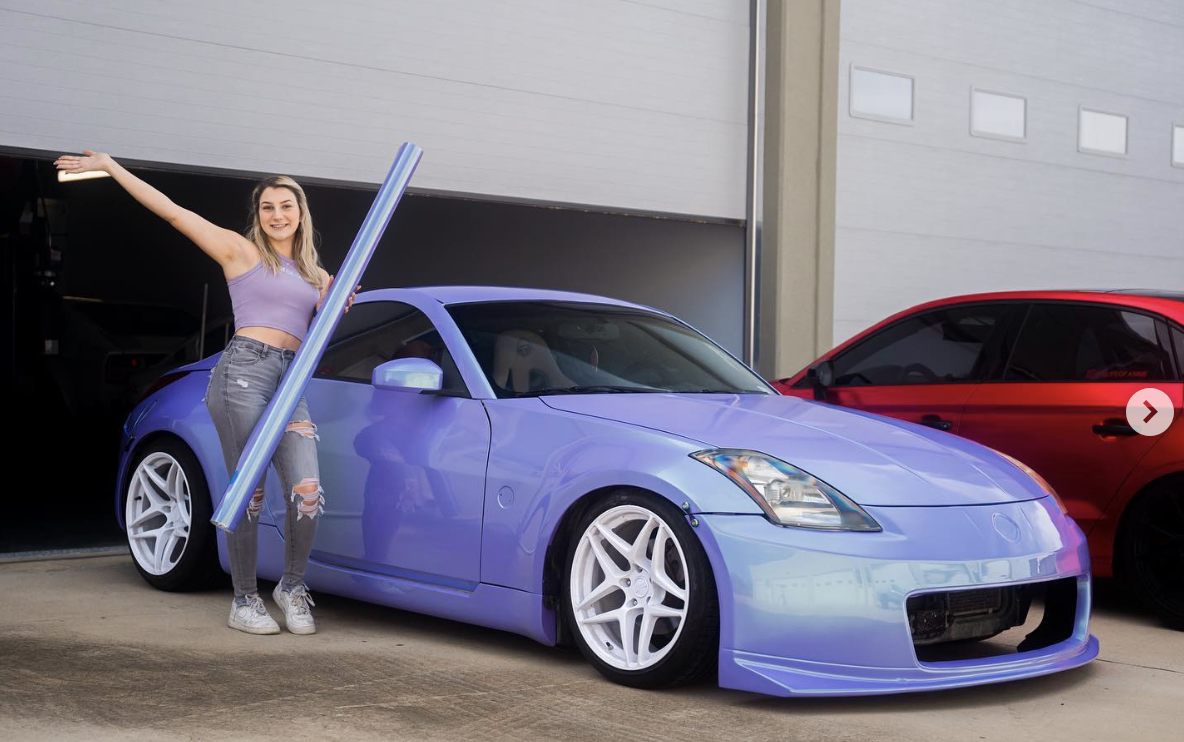 This color change wrap featuring Tinybot’s Space Candy – Lavender Dreams completely transformed my 2003 Nissan 350Z drift car, giving it a high-impact finish while protecting the body through aggressive track use. Wrapping a drift car is ideal because vinyl acts as a sacrificial layer against tire debris, rubber marks, and minor contact, while also allowing quick color changes, easier panel replacement, and a fully reversible alternative to paint—perfect for cars that live sideways.